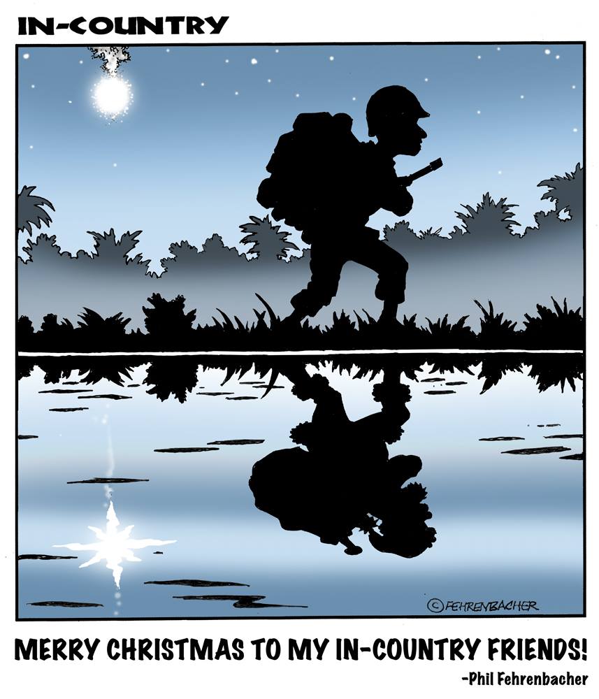 Phil enlisted in the Army in 1965 where you served for years in Vietnam. He became a graphic designer and has worked for the state of Oregon for 26 years. He retired in 2003 and started the Cartoon "In-Country". The cartoons reflect his experiences during his tour of duty in South Vietnam.