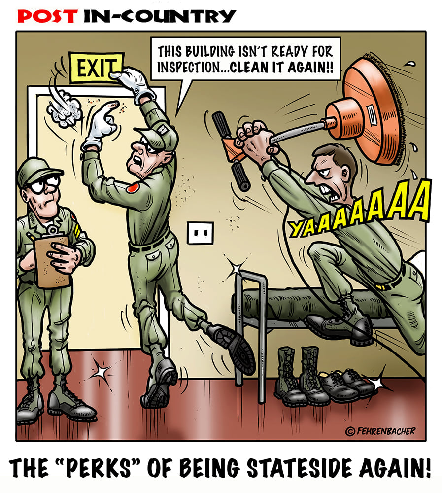 Phil enlisted in the Army in 1965 where he served for years in Vietnam. He became a graphic designer and has worked for the state of Oregon for 26 years. He retired in 2003 and started the Cartoon "In-Country". The cartoons reflect his experiences during his tour of duty in South Vietnam.