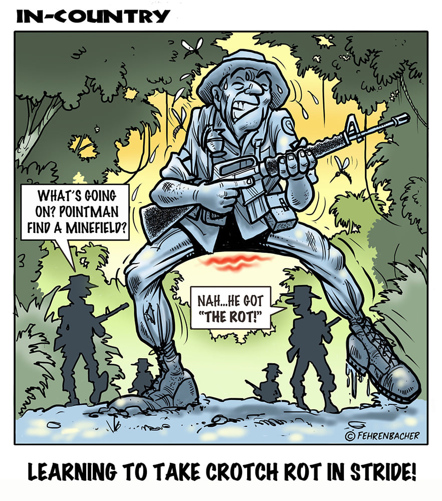 Phil enlisted in the Army in 1965 where he served for years in Vietnam. He became a graphic designer and has worked for the state of Oregon for 26 years. He retired in 2003 and started the Cartoon "In-Country". The cartoons reflect his experiences during his tour of duty in South Vietnam.
